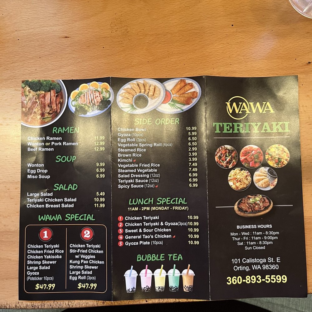 Introducing Wawa Teriyaki, a cherished gem in Orting, WA, specializing in authentic Japanese cuisine. This casual eatery is perfect for families, offering a welcoming atmosphere enhanced by outdoor seating and TV. The menu features a delightful array of traditional and Korean-inspired dishes, including the renowned Bento Box Chicken Teriyaki, complemented by fried rice and shrimp tempura for a wholesome meal at just $25.99.
